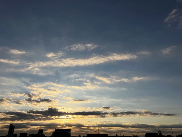 元旦の朝、雲の隙間から現れた太陽が、次第に空を黄金色に染め上げていく瞬間です。