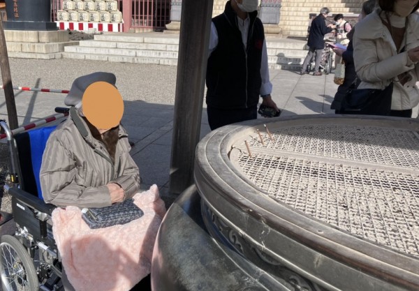 常香炉にお線香をお供えすると、皆様その煙を全身に浴びることで心身を清め、願い事を祈願されていました。
