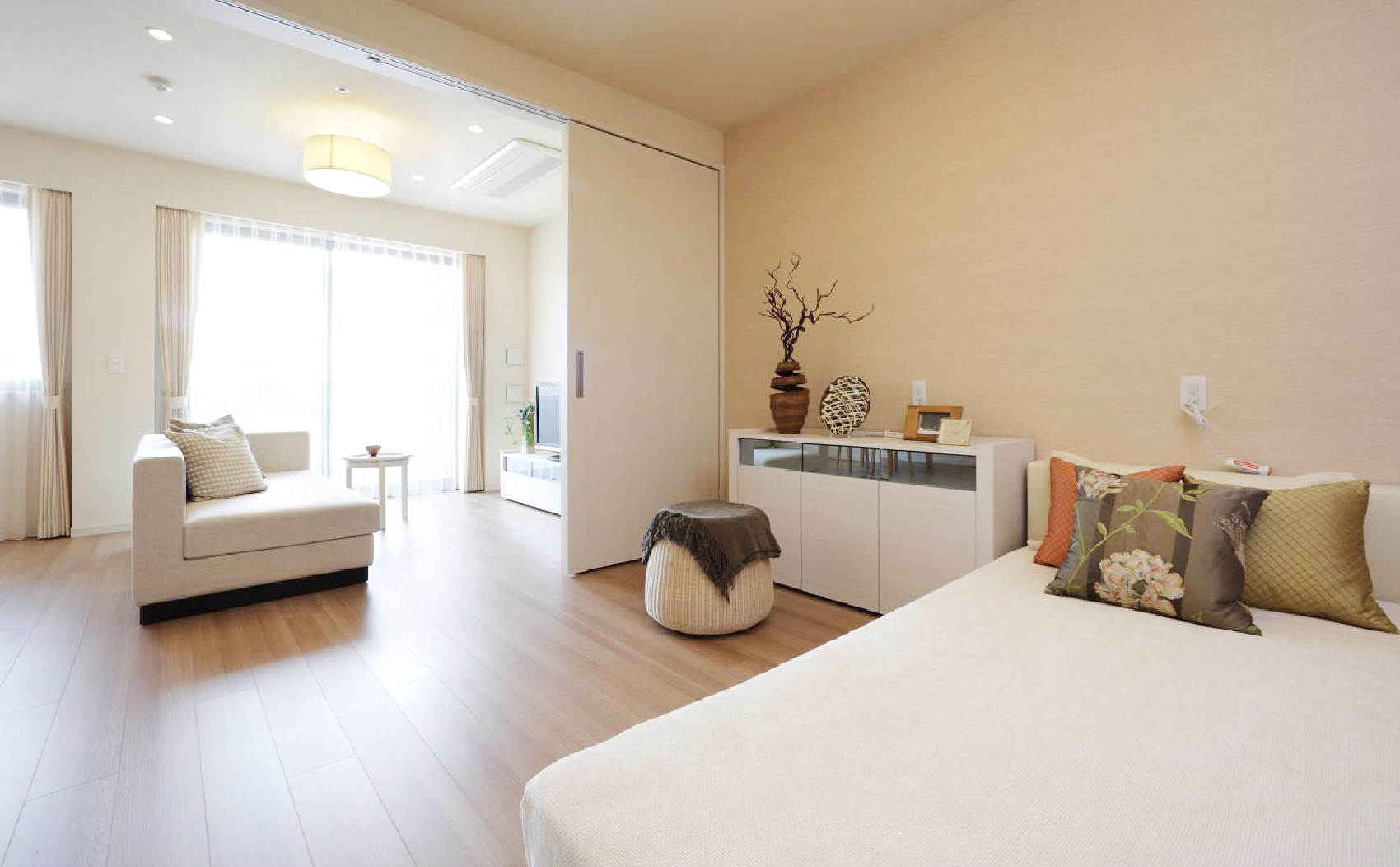 111室ある一般居室は約50㎡の1LDKから約150㎡の2LDK、35プランをご用意しています。インテリアには4種類のカラースキームを設け、お一人様はもちろん、ご夫婦でのご入居にも幅広く対応しています。